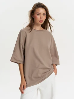 Футболка оверсайз бежевая, футер велюр, плотная ткань