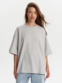 Футболка оверсайз серая, футер велюр, плотная ткань