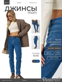 Джинсы мом slim fit с высокой посадкой
