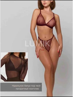 Комплект нижнего белья из сетки коричневый