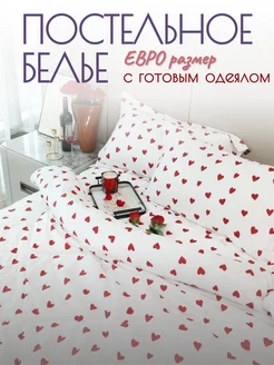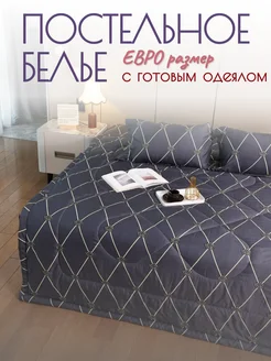 Постельное белье евро с готовым одеялом