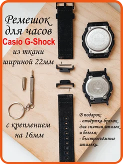 Ремешок для Casio G-Shock из ткани (нейлона) 22мм на 16мм