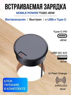 Встраиваемая беспроводная зарядка T02C 45W с блоком питания