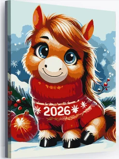 Подарок на новый год картина по номерам Лошадь 30х40
