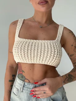 Вязаный кроп топ летний