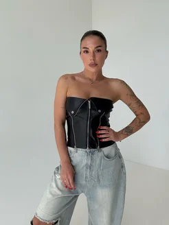 Кожаный топ вечерний