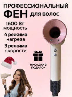 Фен для волос профессиональный мощный с 1 насадкой в подарок