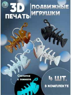Набор Брелков"Скелет рыбы" Игрушка антистресс 3D печать