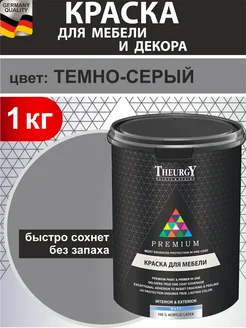 Краска для мебели темно-серая 1 литр без запаха быстросохнущ