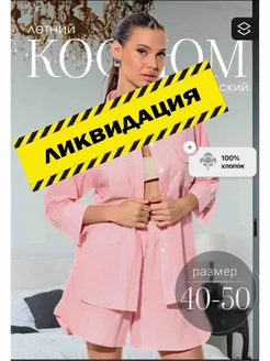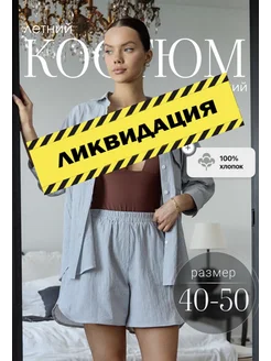 Костюм хлопковый, летний, домашний с шортами и рубашкой