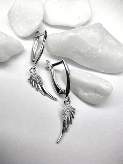 Серьги Крыло пусеты серебро