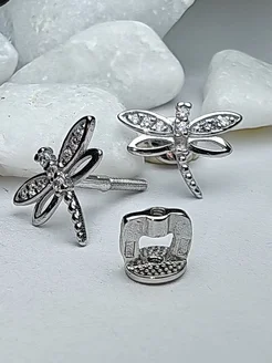Серьги Стрекоза пусеты серебро