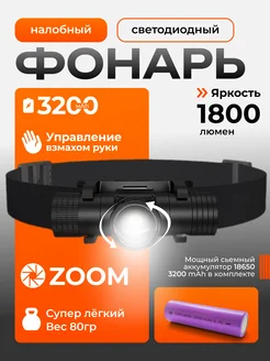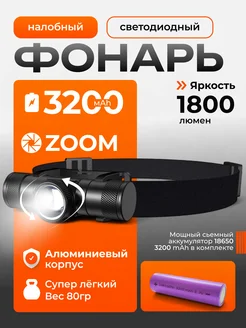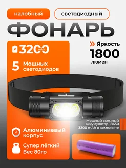 Фонарь налобный аккумуляторный светодиодный 3200 mAh