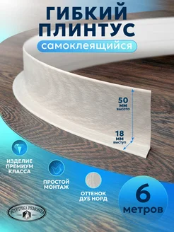 Самоклеящийся гибкий плинтус напольный Дуб Норд 6м
