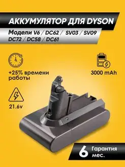 Аккумулятор для пылесоса Dyson v6 DC62 SV03 DC72 3000 mAh