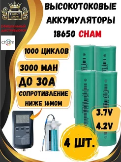 Высокотоковые аккумуляторы 18650 CHAM 3000 mah 4шт