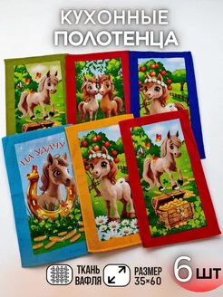 Полотенца Кухонные рогожка 6 шт с рисунками лошадей