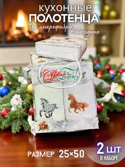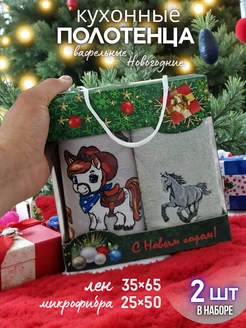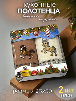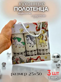 Полотенца новогодние в коробке 3 шт с лошадью 25×50
