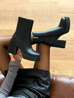 Демисезонные ботильоны на каблуке натуральная кожа высокие