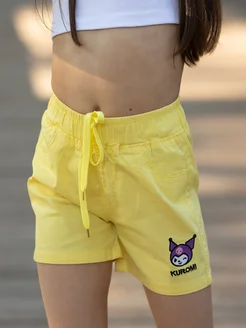 Шорты желтые Kuromi на девочку хлопковые на резинке