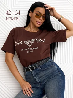 Футболка женская оверсайз больших размеров хлопок с надписью