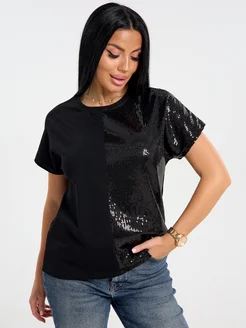 Футболка женская нарядная с пайетками больших размеров