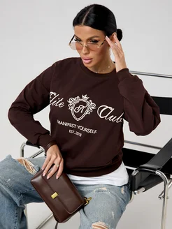 Свитшот женский оверсайз без начеса с принтом