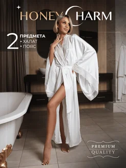 Пижама шелковая домашняя 3 в 1 с шортами, топом и халатом