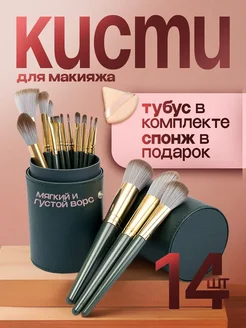 Кисти для макияжа набор профессиональные в тубусе 14 штук