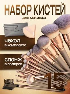 Кисти для макияжа набор 15 штук профессиональные в футляре