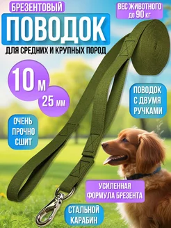 Поводок для собак брезентовый 10 м х 25 мм зеленый