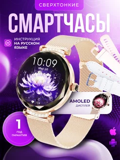 Cмарт часы женские для андроид и айфон и 3 ремешка
