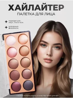 Тени и хайлайтер для лица палетка 10 цветов