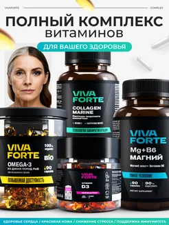Набор витаминов омега 3, коллаген морской, магний В6, Д3
