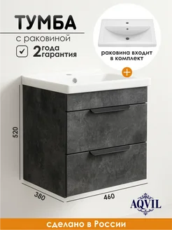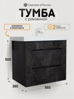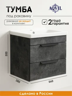 Тумба в ванную подвесная 56 см без раковины цемент темный
