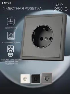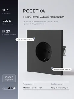 Розетка одинарная черная с заземлением