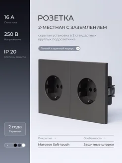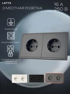 Розетка двойная серая с заземлением