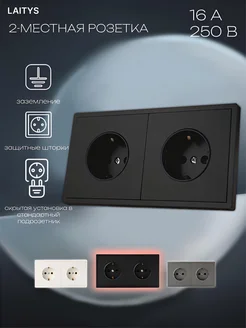 Розетка двойная накладная встраиваемая с заземлением
