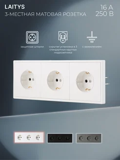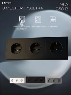 Розетка тройная, внутренняя, накладная встраиваемая, чёрная