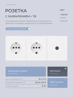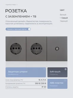 Розетка тройная серая для TV и интернета