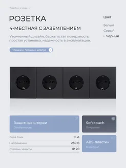 четверная розетка с заземлением черная
