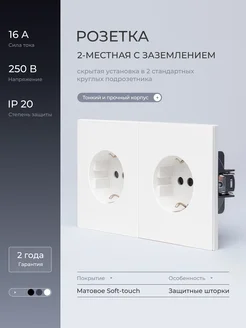 Розетка двойная белая с заземлением