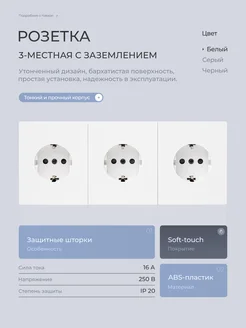 Тройная розетка с заземлением белая