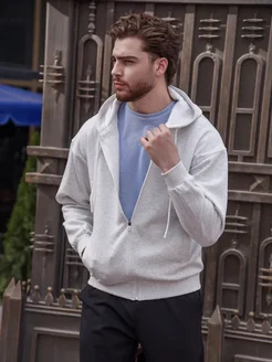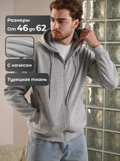 Зип худи мужское оверсайз с капюшоном на молнии с начесом
