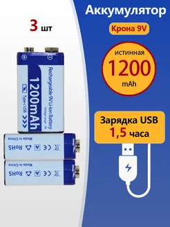 Крона 9V батарейка аккумулятор с зарядкой перезаряжаемая USB