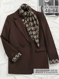 Пиджак двубортный классический с платком из шелка