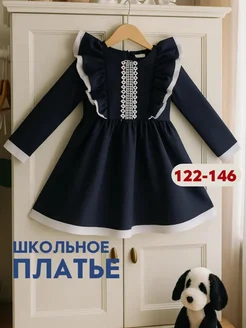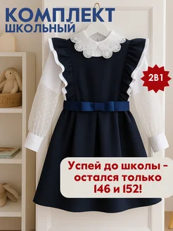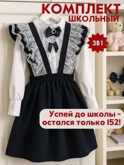 Школьный сарафан с рубашкой и брошью комплект 3 в 1