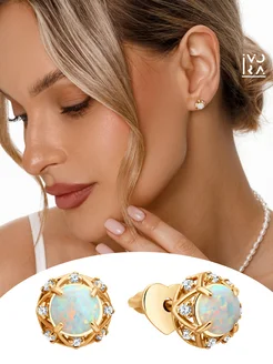 Серьги серебряные 925 пробы пусеты с опалом