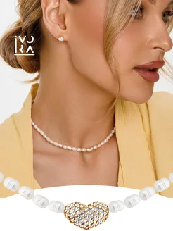 Колье на шею сердечко серебро 925 ожерелье жемчуг