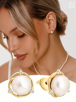 Серьги серебряные 925 пробы пусеты с жемчугом